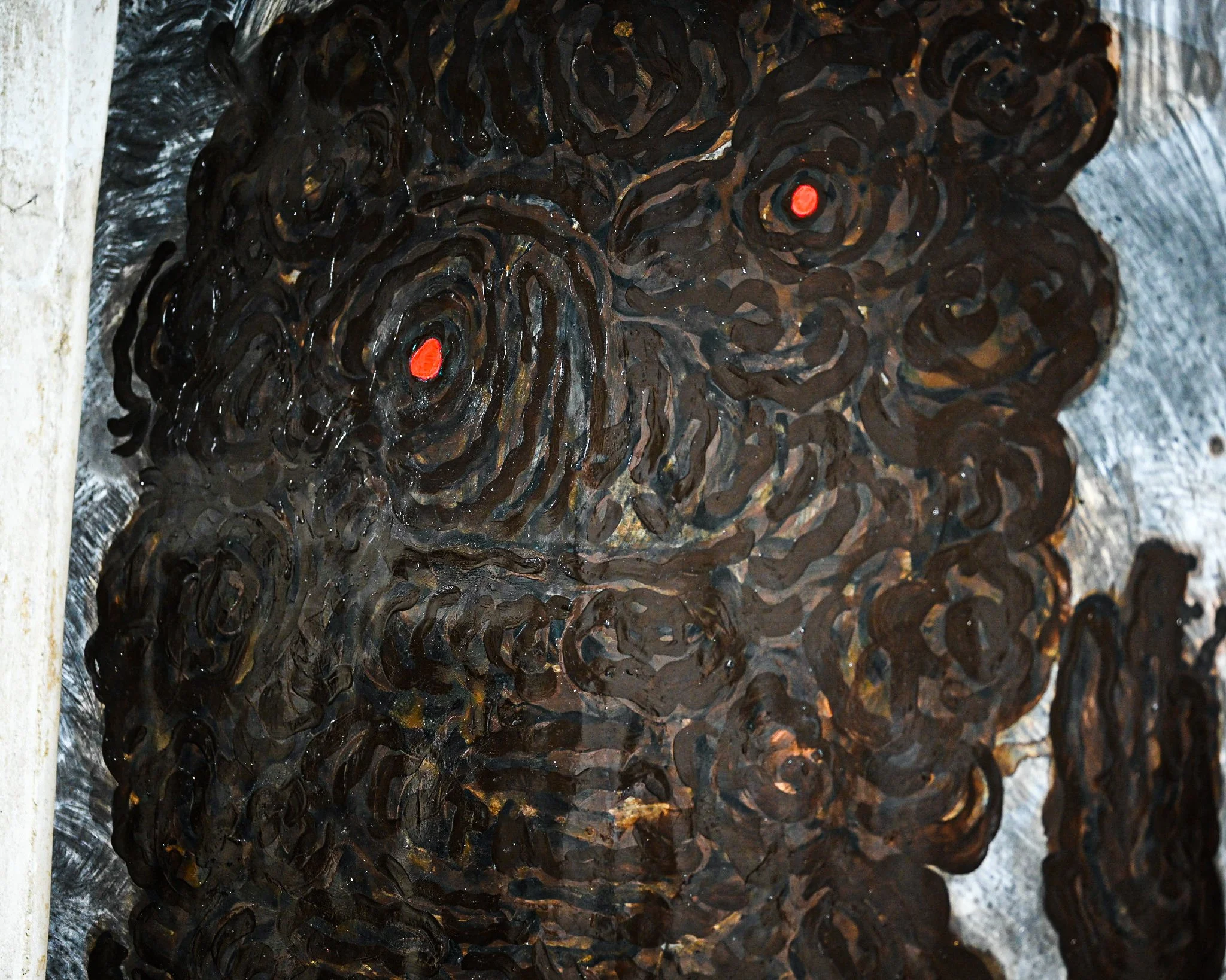 charcoal from my summer fires, wood varnish and acrylic on paper